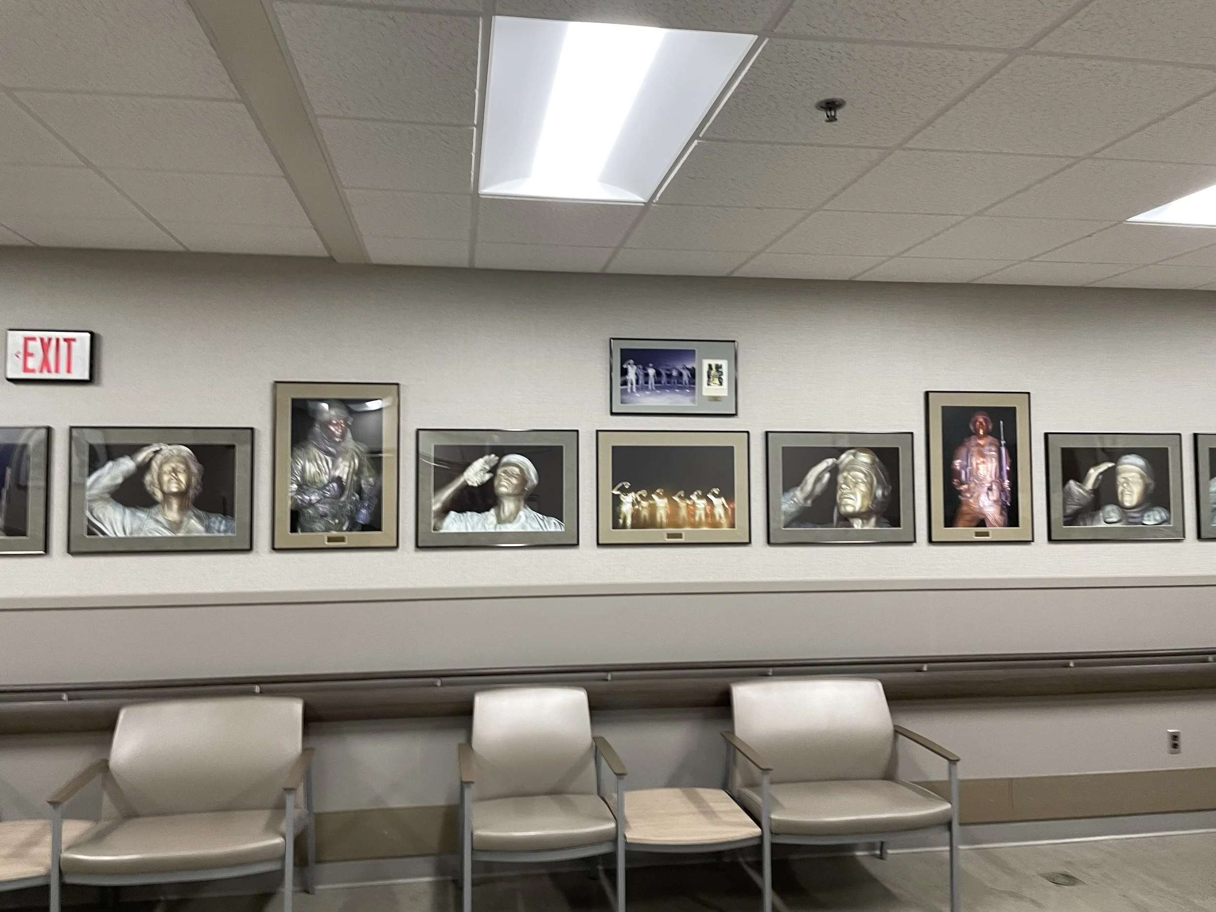 On the way to the cafeteria, I saw these photos. I’m not sure if they are photos of bronze statues or bronzed photos of veterans. There isn’t a lot of information posted with the pictures but I will be sure to ask for further clarification because they are really cool.